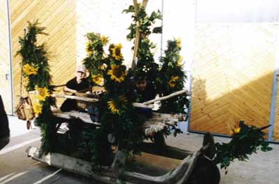 Die Attraktion war ein rustikaler Schlitten von Sepp Brandl mit typisch Holledauer Verzierung:
